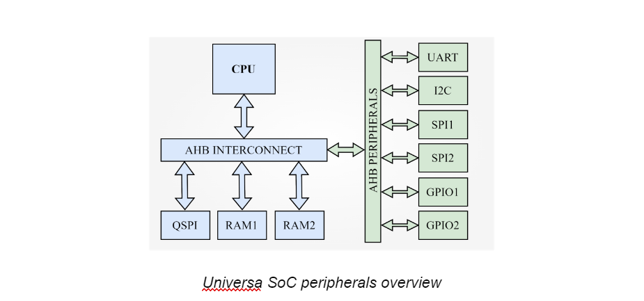 The Vtool team wanted to find a new way to ensure fast time-to-market HW/SW development, by helping users kickstart their SoC quickly. It is clear that the industry is going in the direction of RISC-V, so we put our heads together to create and release our first flexible, configurable, and modular SoC solution, Universa. This platform is designed to be used as a hardware framework for evaluating customized peripherals, which is also applicable for ASIC software development and validation, advancing CPU-based ASIC platform development, facilitating CPU development, and more.Vtool developed an initial SoC version, named Universa 1.0, which integrates AXI interconnect and the peripherals UART, I2C, and TIMER. We later upgraded it to include AHB interconnect, while changing the existing peripherals to be compatible with both AXI and AHB, and added two more peripherals, SPI and QSPI. Universa 2.0 was released with a set of peripherals that enable communication with external sensors, loading and executing software from external QSPI flash, evaluation of different HW/SW co-design optimization techniques, execution of Real-Time operating systems, and more. Universa 1.0 and 2.0 had an open-source RISC-V single-core solution, allowing us to verify its features and perform HW/SW co-verification. After successfully verifying the overall solution, we tested Universa on an FPGA platform and developed Universa’s initial SDK package.