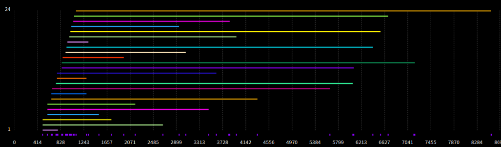 In addition to our well-known route visualization, we now introduce latency visualization. This view focuses on individual transactions, clearly showing when each transaction starts and when it ends. With this graph, it becomes easy to analyze duration-related behavior and to understand how transactions are distributed across simulation time at every time point.
