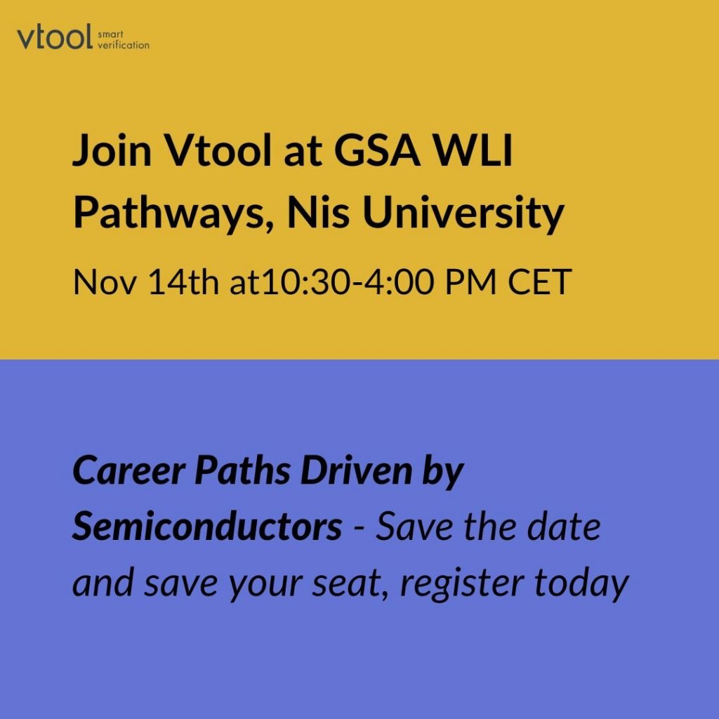 Vtool is honored and super excited to co-host the event GSA WLI Pathways – Career Paths Driven by Semiconductors, at Niš University, November 14, 10:30-16:00 CET.