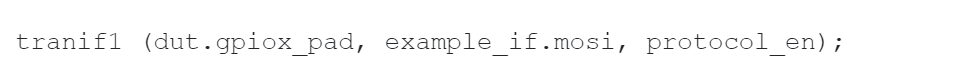 This will always “look over” protocol_en signal and it will only connect dut.gpiox_pad and example_if.mosi when protocol_en is set to 1.
