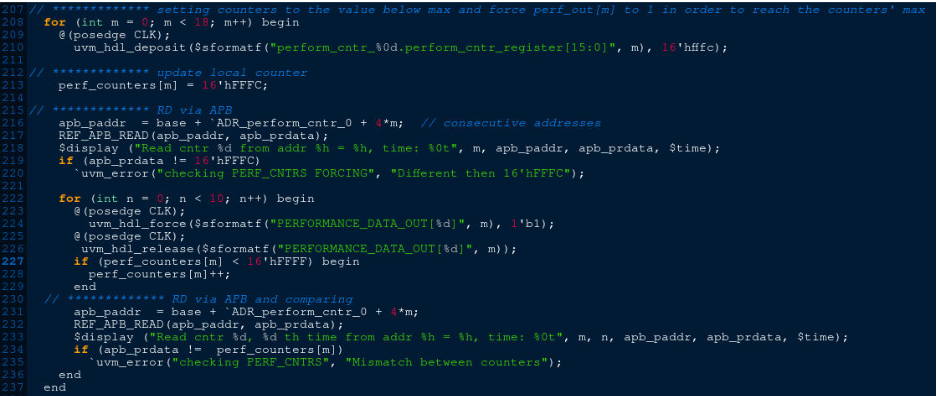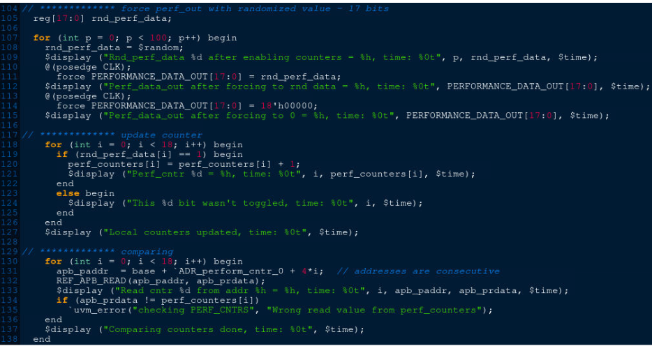 The test procedure involves forcing the controller’s output to a random value from the testbench and then reading and comparing the counters’ values from the registers. The steps are as follows: