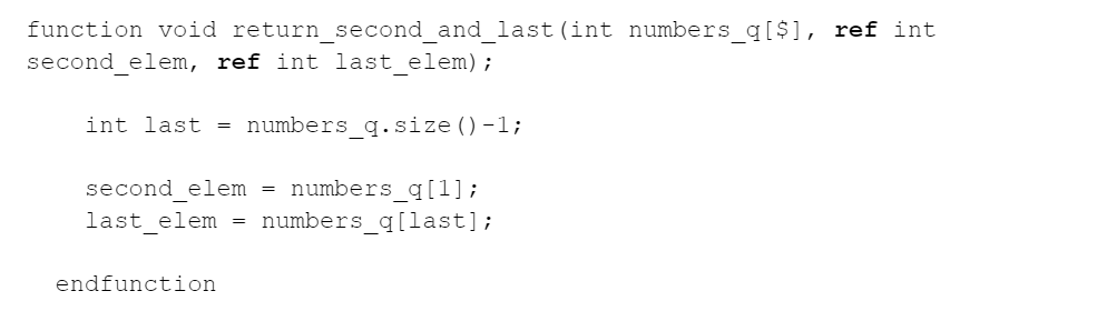 Another option is to use passing the arguments by reference. Let’s say you need the second and last element in an array/queue.